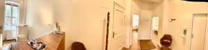 Die Praxis ist modern und geschmackvoll eingerichtet, hat zwei Behandlungsräume, eine Anmeldung mit entsprechendem Tresen und ein kleines Labor.